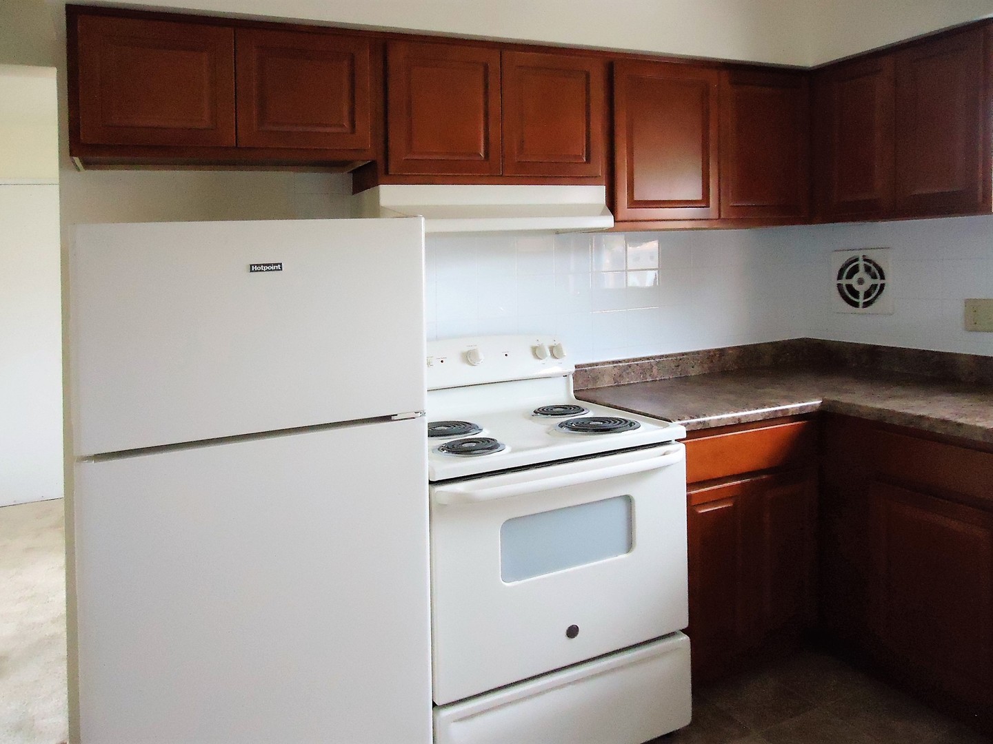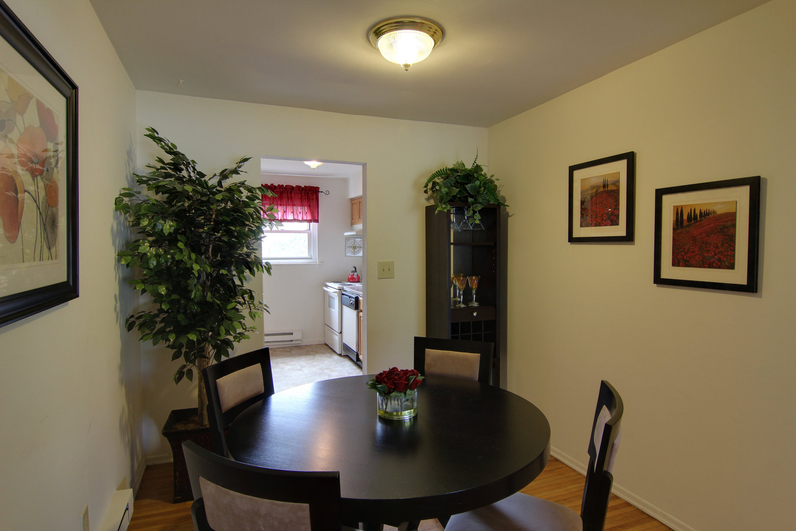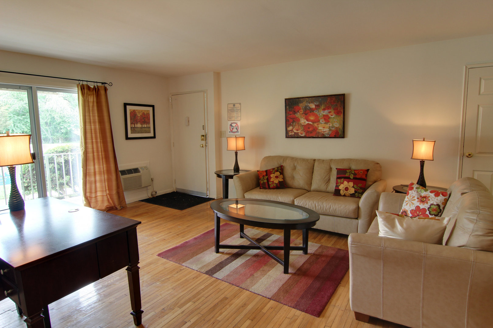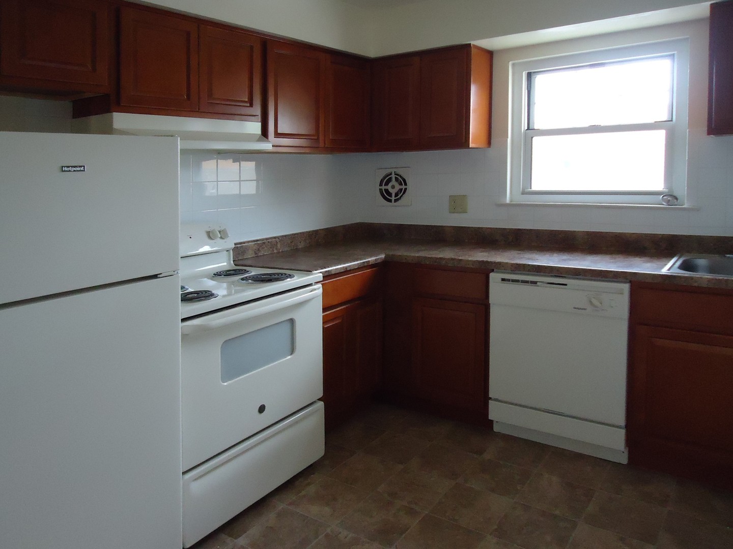 Our spacious, North side one bedroom, one bath apartment on the second floor offers approximately 725 square feet of living space. This apartment features wall-to-wall carpeting in the living room, dining room, and bedroom. You will love the large, walk-in bedroom closet. Each apartment includes a refrigerator, dishwasher, range, and air conditioning unit. There is also a balcony off the living room. You pay for electricity, but your rent includes your heat and hot water. There are laundry rooms, available to tenants on a 24 hour basis, and ample parking on-site.