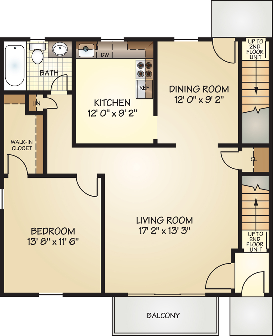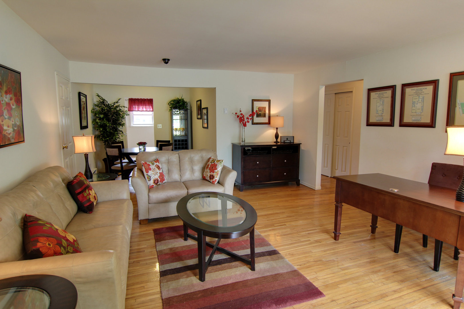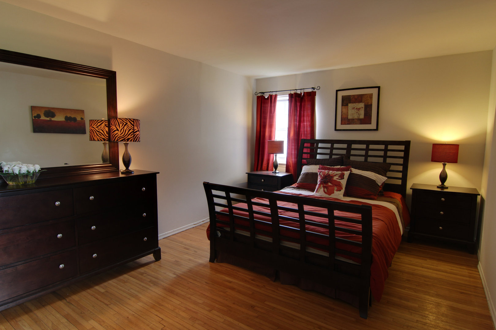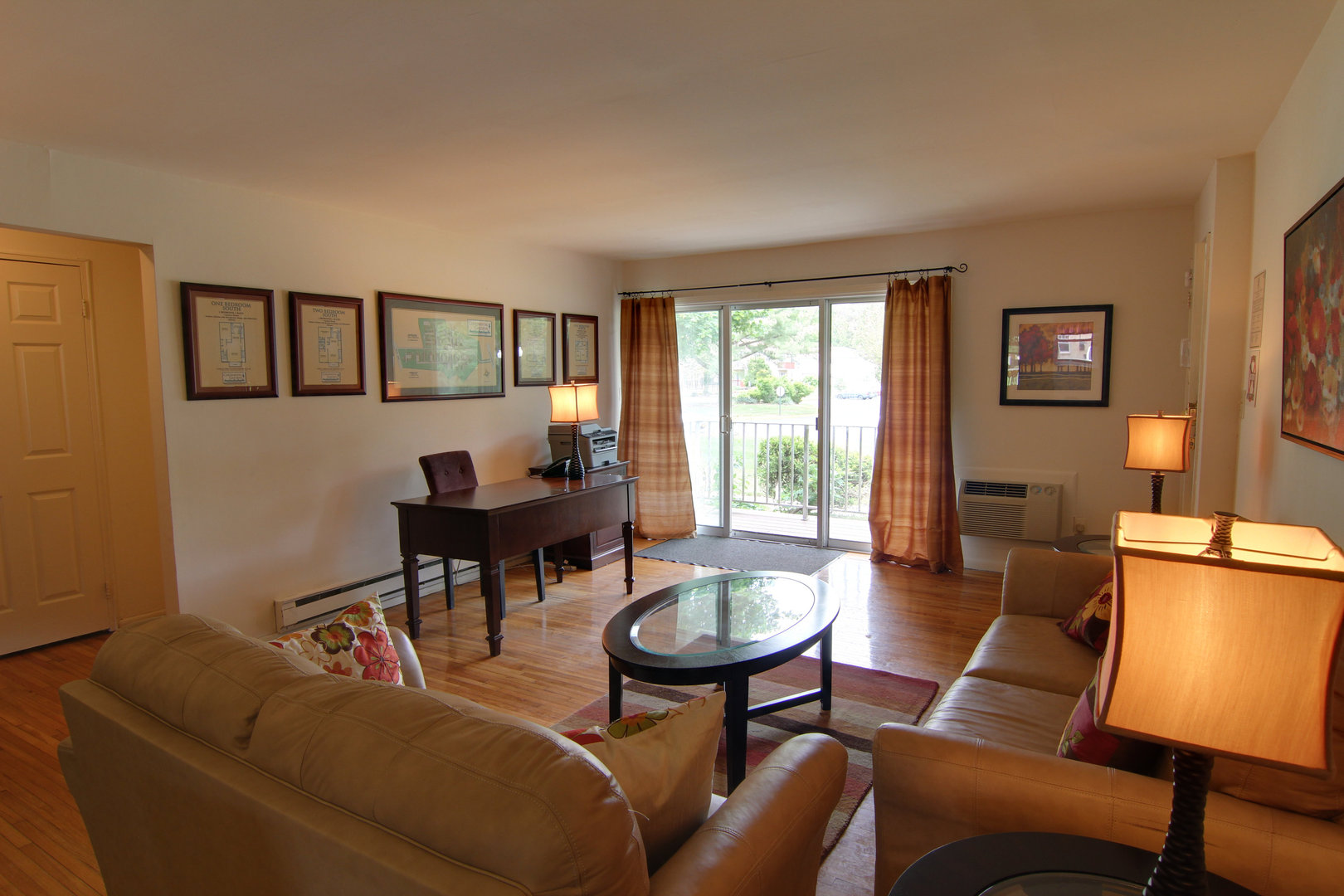 Our spacious, North side one bedroom, one bath apartment on the second floor offers approximately 725 square feet of living space. This apartment features wall-to-wall carpeting in the living room, dining room, and bedroom. You will love the large, walk-in bedroom closet. Each apartment includes a refrigerator, dishwasher, range, and air conditioning unit. There is also a balcony off the living room. You pay for electricity, but your rent includes your heat and hot water. There are laundry rooms, available to tenants on a 24 hour basis, and ample parking on-site.