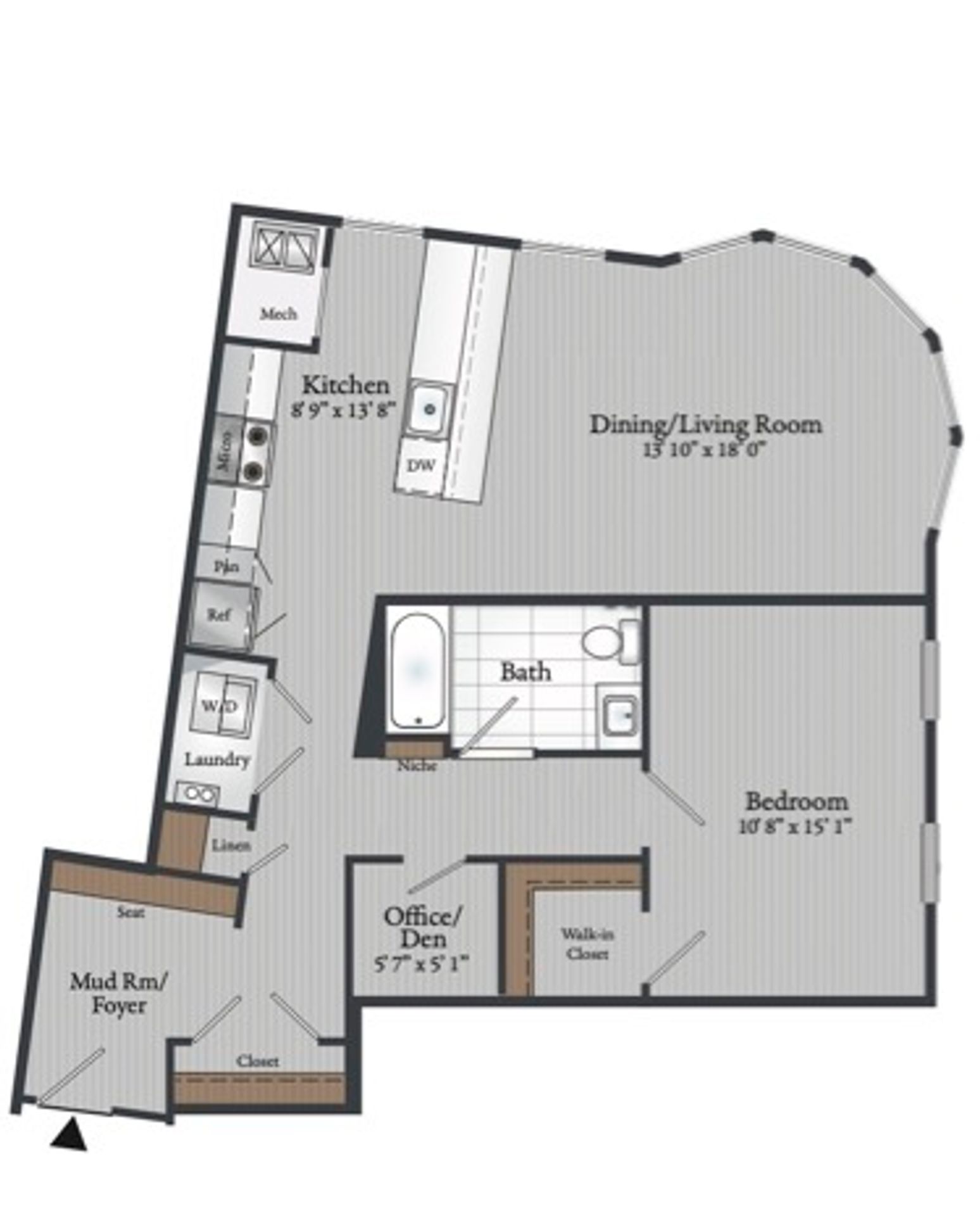 One Bedroom One Bathroom with Den 942 Square Feet