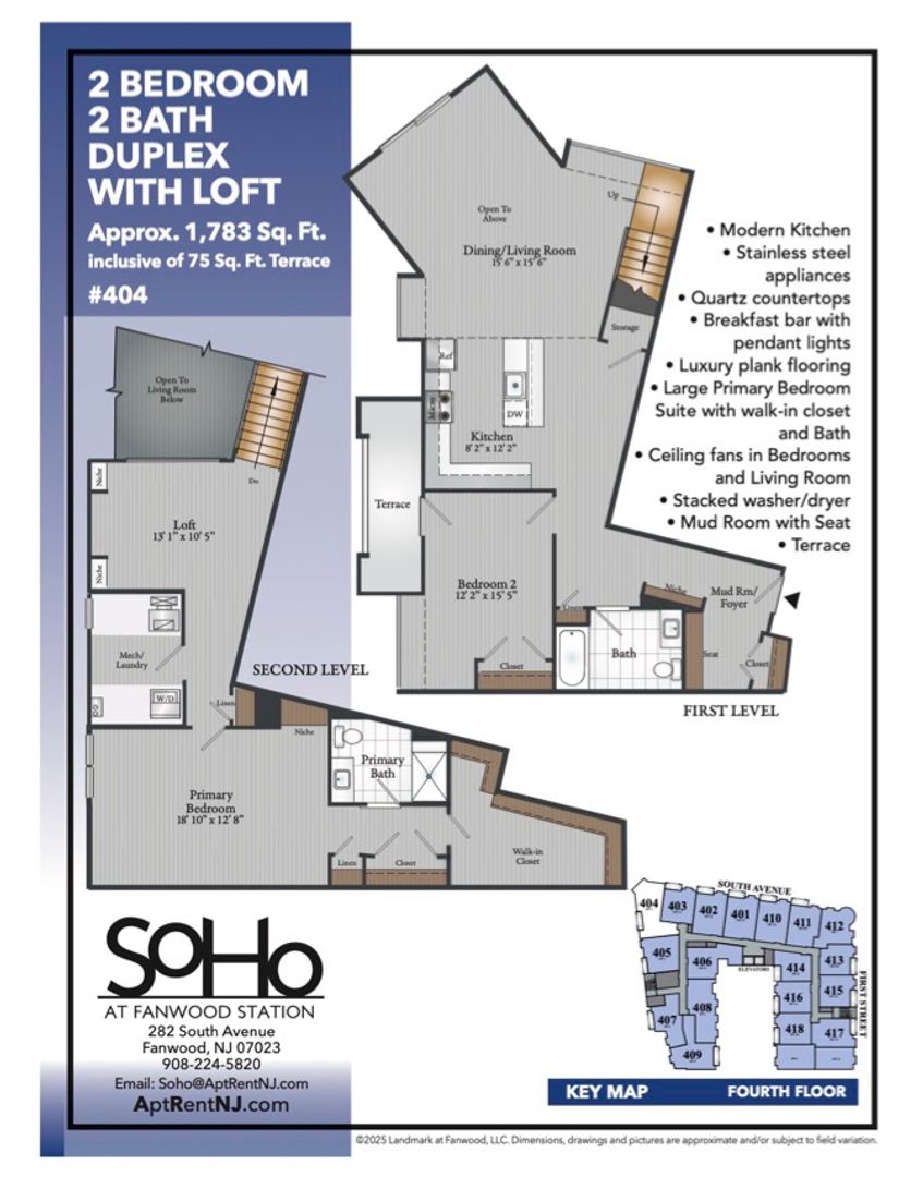 Welcome to Soho at Fanwood, where you will be greeted by an unparalleled blend of timeless architecture, modern apartments with unique floor plans, indoor and outdoor amenities, all located just steps from restaurants, stores, and a train line to Manhattan! Our boutique community of 58 special residences provides for spacious flats and duplex lofts featuring high-end finishes, quartz kitchen islands, soaring ceilings, and open-concept layouts perfect for work and relaxation.