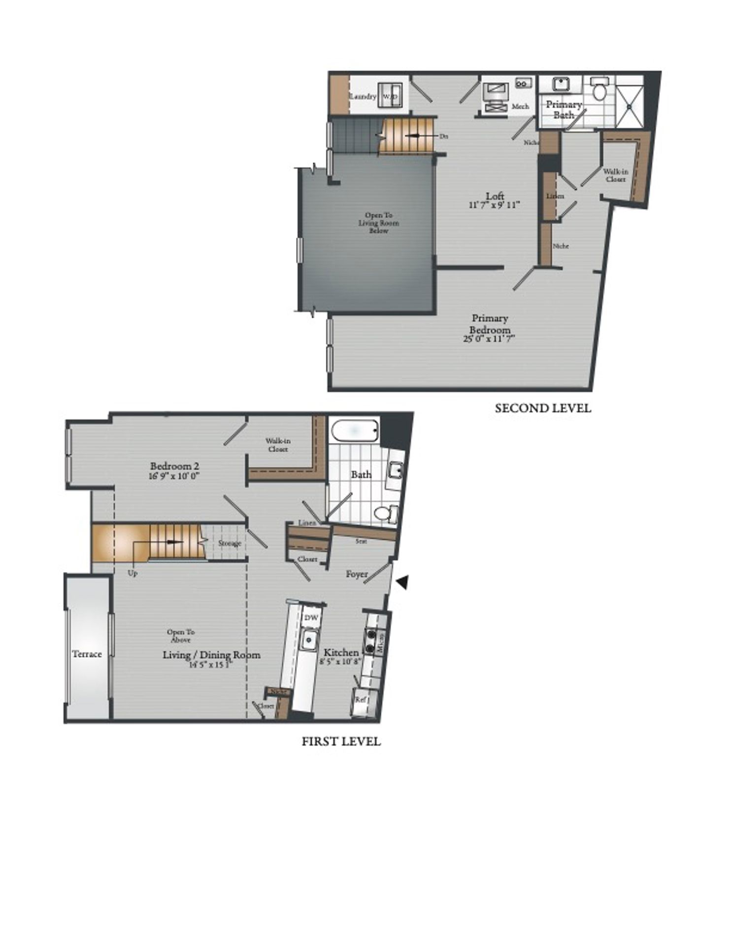 Two Bedroom Two Bathroom Duplex with Loft 1,613 Square Feet