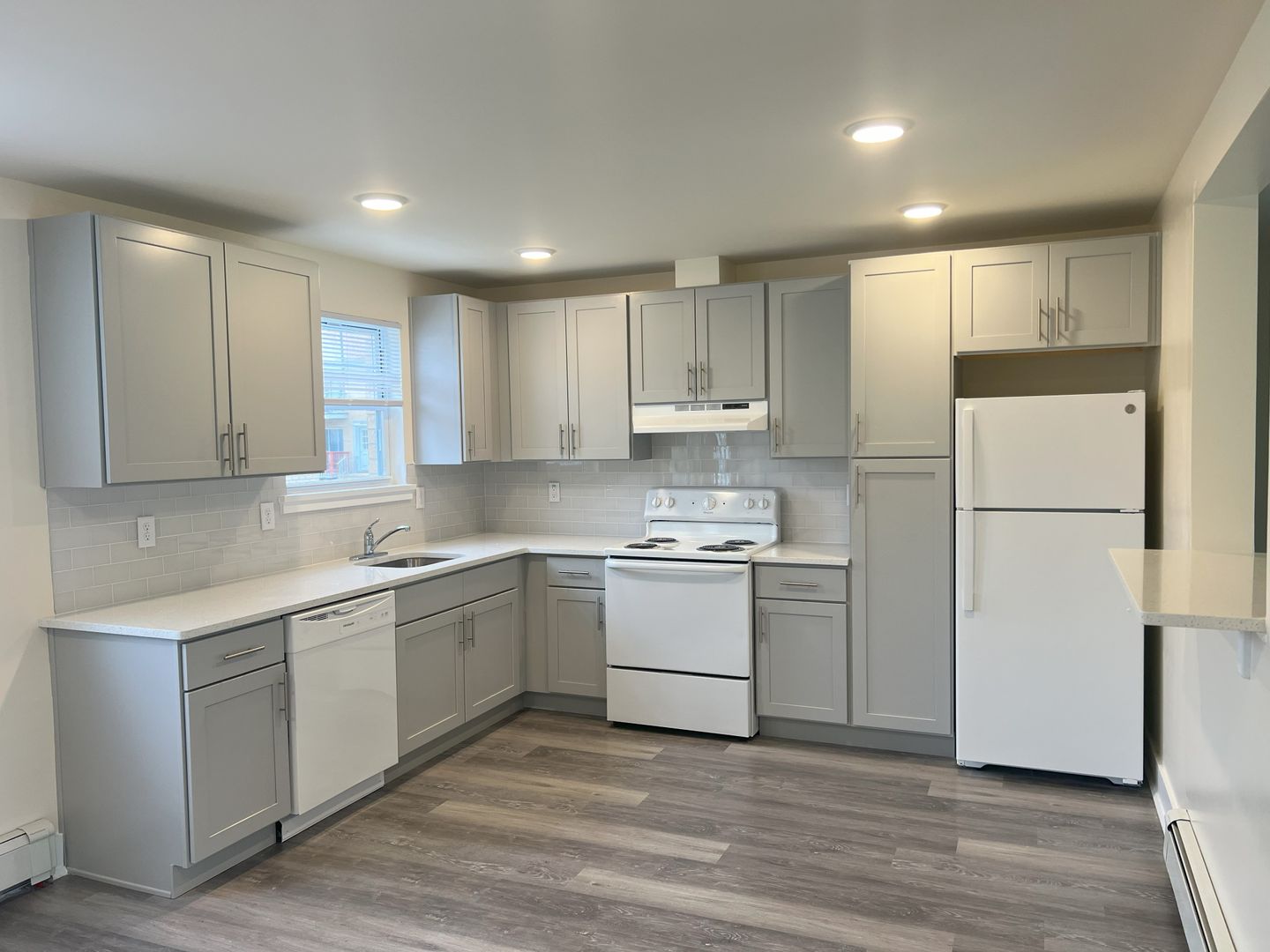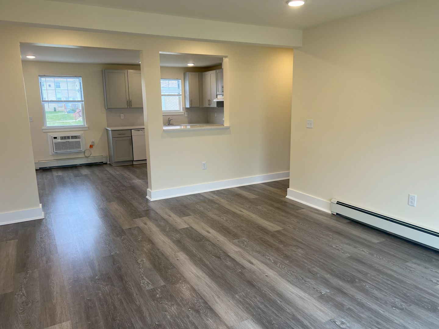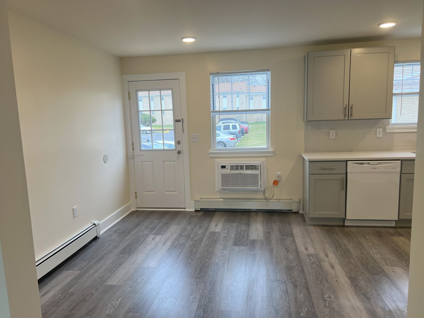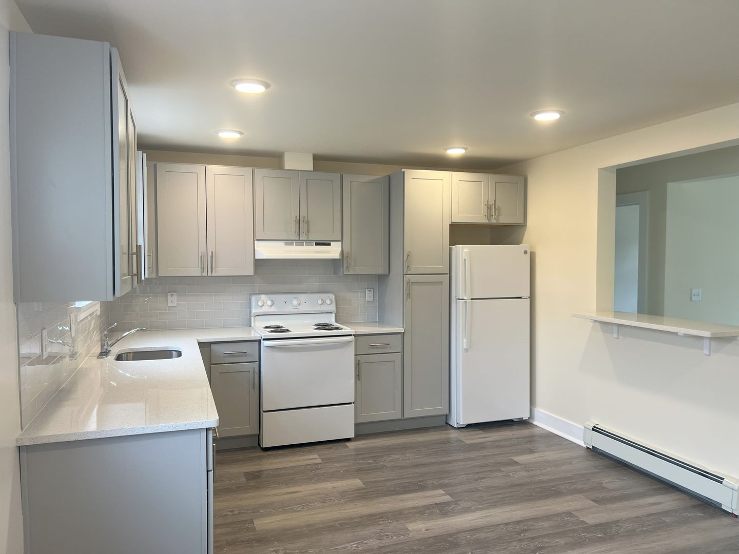 Unit 2705 is a 1 bedroom, 1 bathroom deluxe first floor apartment, offering approximately 725 sq. ft. of living space. The apartment has been completely rebuilt from top to bottom. It features dining room and modern kitchen with premium cabinets, quartz countertops, glass tile backsplash, and a passthrough counter into the living room. Appliances include a stove with oven, dishwasher, refrigerator and in-wall air-conditioner. This updated apartment features luxurious LVT flooring throughout, spacious closets with ventilated shelving, and recessed LED ceiling lighting. The spacious living room’s triple panel glass slider, leads to the balcony, and affords plenty of natural light. The roomy bedroom features a huge walk-in closet. Our remodeled bath contains ceramic tile flooring, and ceramic tiled surround, bathtub with shower and sliding, obscured glass doors. Rent includes heat and hot water, tenant does pay for electricity. There is an on-site laundry room in Building 23, just next door, which is available to tenants on a 24-hour basis, and ample on-site parking.