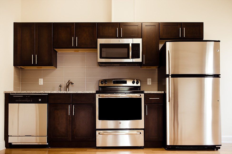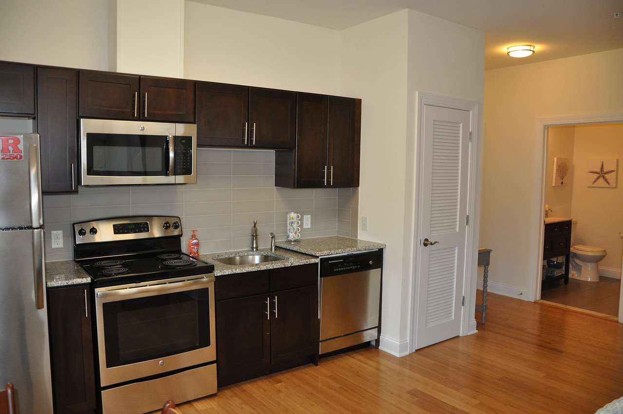 Modern Kitchen with full-Sized stove, refrigerator and microwave